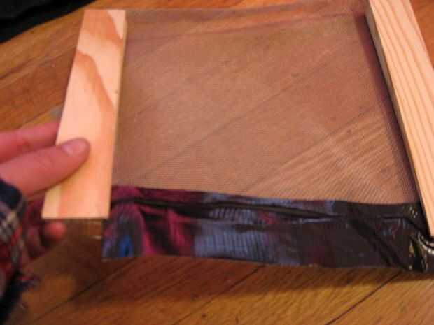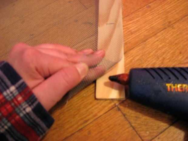hacer lo mismo al final flaco como se en el paso 5 plegado encima de la pantalla entre las cuñas y recorte las puntas. Puse un poco de pegamento en la proyección donde no grapada a su que recortado recto (tenga cuidado de no quemarse - ha pedido una pistola de pegamento caliente una razón).