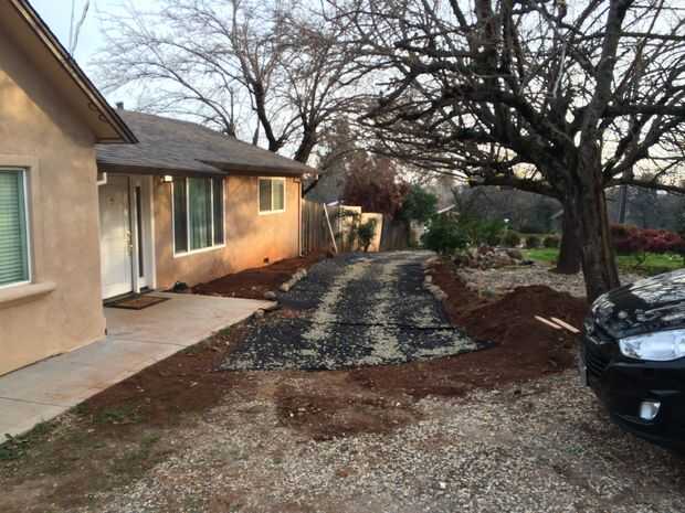 Como estamos construyendo un camino de grava que necesitábamos un contrapiso de la tela del filtro por dos razones. Mantener el suelo de arcilla separada de la base de grava y para evitar que las malas hierbas/hierbas creciendo en el camino de entrada.