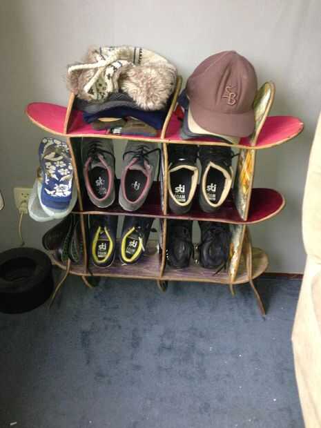 Entonces vino a mí, debido a skateboarding que también tengo varios pares de zapatos y un sombrero, así que decidí hacer un cual estante simple que podría utilizar para guardar mis zapatos y los sombreros usando 6 entero y uno (2 piezas) monopatín roto.