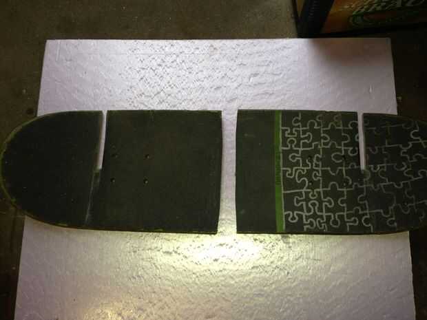 Después de alligning para las piernas trabajar te tienen que hacer un extremo de la pierna recta para se pare en el piso, esto en las partes del centro del tablero, lo hice pude ajustar las patas en la rejilla utilizando los elementos de la cola y la nariz (el final de un patín delantero y trasero). Luego tienes que decidir en dónde colocar las piernas, tomé la parte exterior de las juntas verticales porque parecía mejor así.