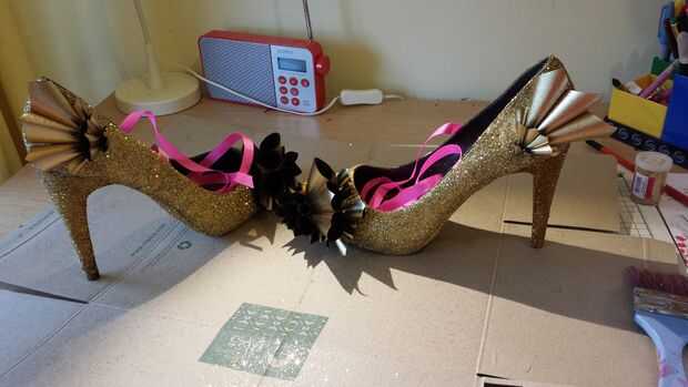 He utilizado PVA resistente al agua y purpurina oro. Desordenada, me puse brillo en todas partes, incluso con mi tarjeta doblada a la purpurina, vierta en la olla.