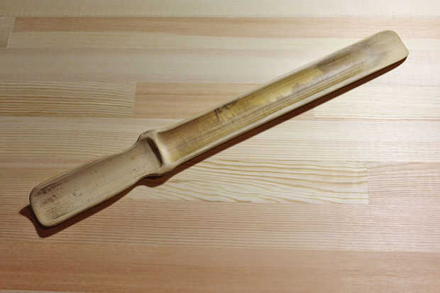 Yo he necesitado un calzador para un rato, así que hice esta sencillita de un trozo de bambú tenía por ahí.