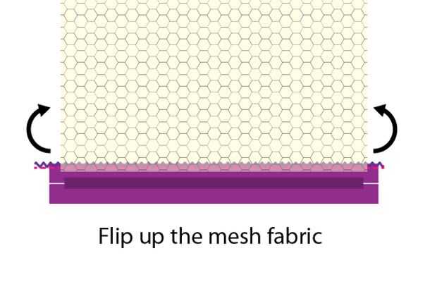 3. Centro de uno de los 6" extremos de la tela de malla en el borde superior de la cremallera.