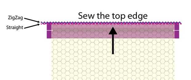 • Si usted tiene una máquina de coser, coser una puntada recta ⅛"de una pulgada hacia abajo desde la parte superior y coser una puntada en zigzag por el borde para enlazarlo.