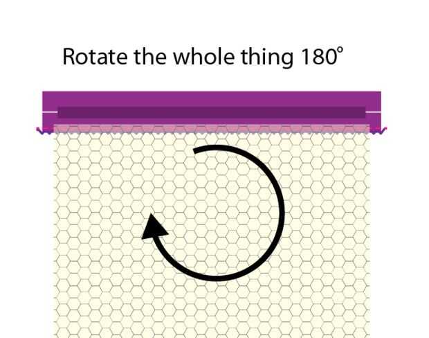 6. Girar 180 grados sobre la mesa frente a ti toda la cosa. La cremallera es todavía en la parte superior (boca abajo) y la tela recién adjunta es hacia usted.