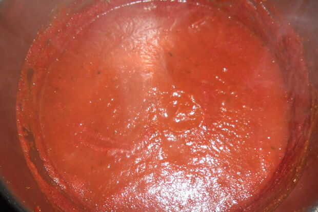 En una olla pequeña, mezcle la pasta de tomate con un poco de aceite, agua y especias. Llevar a ebullición y cocer a fuego lento.