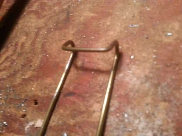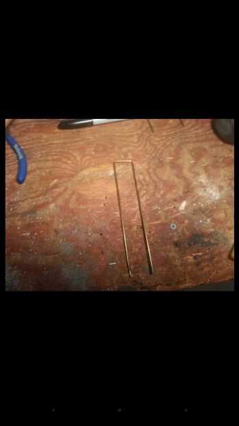 Este proceso se repetirá ahora, pero esta vez se utilizará un pedazo más largo. En este caso, cuanto más mejor. Corte un 14 en alambre dado mi dimensiones de espejos. Después de cortar el 14 en alambre repetí el proceso de doblar el alambre 1 desde el punto de centro en ambos lados. Luego marcó otro 1 y 1/2 en cada lado del alambre y había doblado como la foto de arriba.