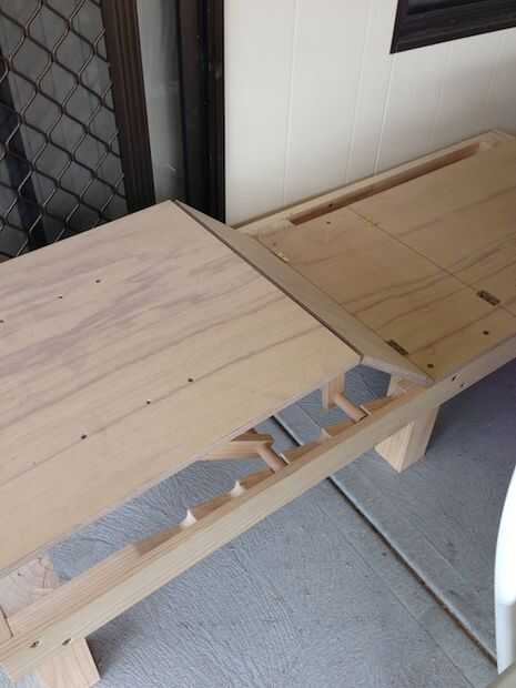 Usted puede trabajar solamente las longitudes necesarias una vez que se monta la cama y colocando los soportes en la sección derecha. Por debajo y marque donde los extremos son y usted sabe donde atornillar los rieles para conectar los soportes a la madera contrachapada. La sección de soporte del muslo sólo necesita un soporte de muy corto (un par de dientes de dragones largo (250mm aprox) la sección de becerro necesita una más larga que encaja en la siguiente sección de dientes de dragones y alcanza alrededor de la mitad de la sección (ver la primera foto)