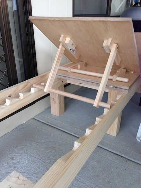Taladrar un agujero de 25mm a través de los extremos y ponga una sección de la espiga a través de cada extremo. Esto hace que el soporte ajustable que se ranura en los dientes de dragones. Como he dicho anteriormente que se pueden orientados hacia el centro, así los dientes de dragones. Me gusta esta forma como la tensión lleva a cabo muy bien.