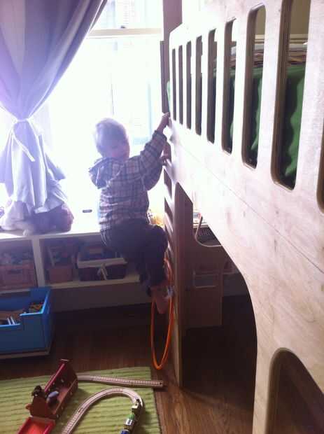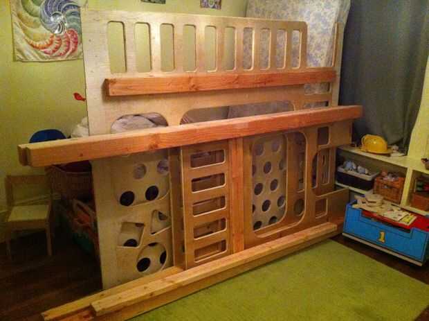 En primer lugar, tomar los tornillos del panel de la cama y de 2 x 4 que se extiende a través de la espalda. Si no masilla los orificios en la parte delantera (excepto los horizontales), usted puede sacar los tornillos fácilmente también. Su camión de bomberos debe romper fácilmente en cuatro pedazos (frente, lados, cama) para moverse. Poner todos juntos y tirar un colchón en la parte superior, usted está listo para ir!