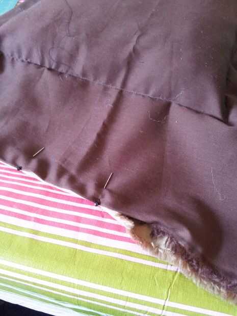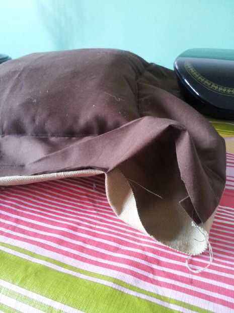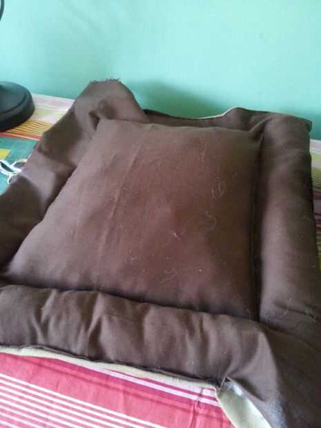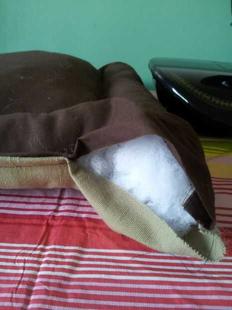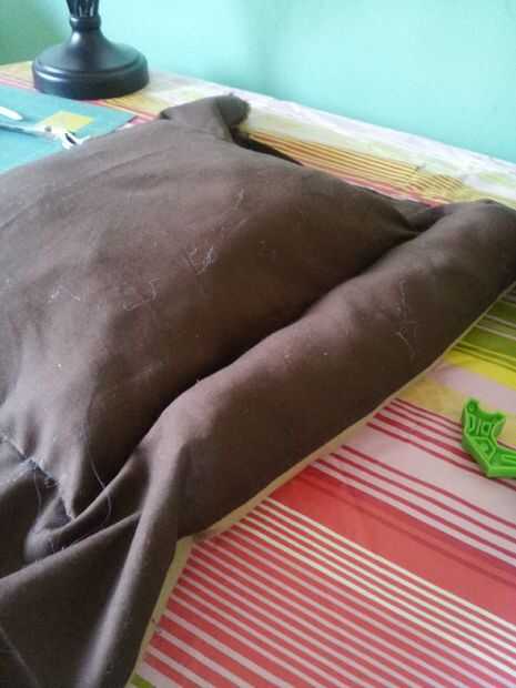Cuando haya terminado de clavos lo, simplemente coserlo y luego la materia. Otra vez olvide cosas en las esquinas. Se pone un poco apretado allí así que si usted quiere puede conseguir la ayuda de una regla handy dandy o un niño pequeño para ayudar a conseguir el relleno hasta el fondo. He utilizado mi cosa de juguete de capturador de hijos, trabajó muy bien para empujar el relleno. ahora sólo doblar una costura y coser los extremos cerrados. ahora se realizan con la parte de la cama. YAY!!