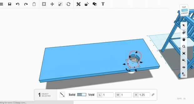 Mesa Convertible la realizó mi primero duplicar la forma original de la cama y luego la contracción hacia abajo una pequeña cantidad que cabrían en un poco mejor. La forma fue creada usando una forma del cilindro y la opción de material vacío. Esto creó el agujero en el medio que entonces era capaz de ajustar el tamaño que quería. Restos adicionales y los bordes acentuados fueron quitados por el uso de un rectángulo transparente.