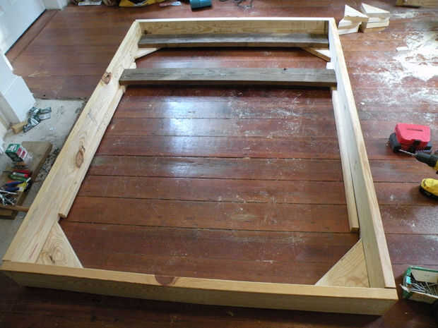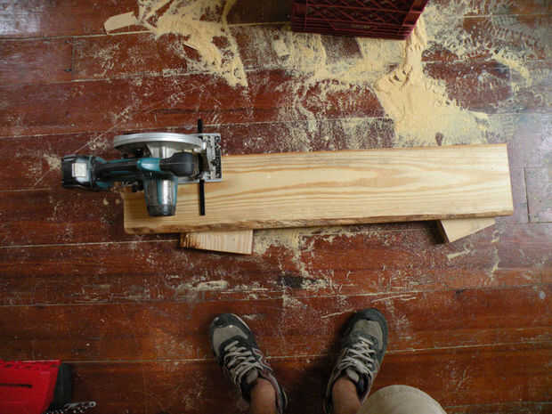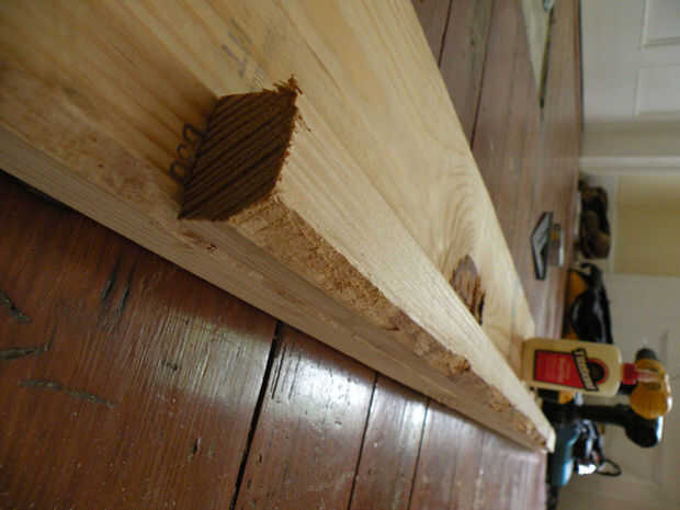 Corte sus listones para caber agradable y apretado dentro. He utilizado colas viga rescatado de un viejo cobertizo. No importa si esa madera parece mediocre o es un poco combadas o lo que sea, siempre y cuando sea fuerte. Se pueden utilizar pedazos más finos, como el 2 "x 4"s, pero sería prudente. Ellos probablemente se combará con el tiempo, que abarca cuatro pies sin apoyo. Mucho más en y asegúrese de que doblará hacia arriba.
