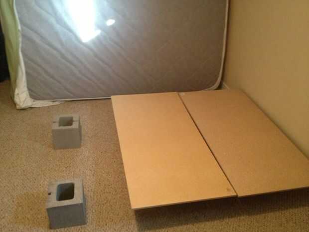 tenía un colchón de tamaño queen en mi piso por demasiado tiempo. Siendo estudiante universitario se rompió sin tiempo suficiente para armar algo más sustancial, me tiré a esta cama de plataforma simple.