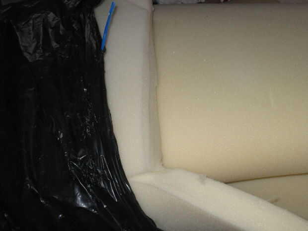 1. he encontrado alguna buena espuma en una venta de yarda durante el verano para recuperar mis taburetes de cocina (que aún no he hecho) y corté algunas de ella para hacer los cojines para la cama de cucheta. Corte 2 piezas cada 11 3/4 "x 19 3/4". Esto deja espacio extra para la tela y las costuras de la cubierta del amortiguador.