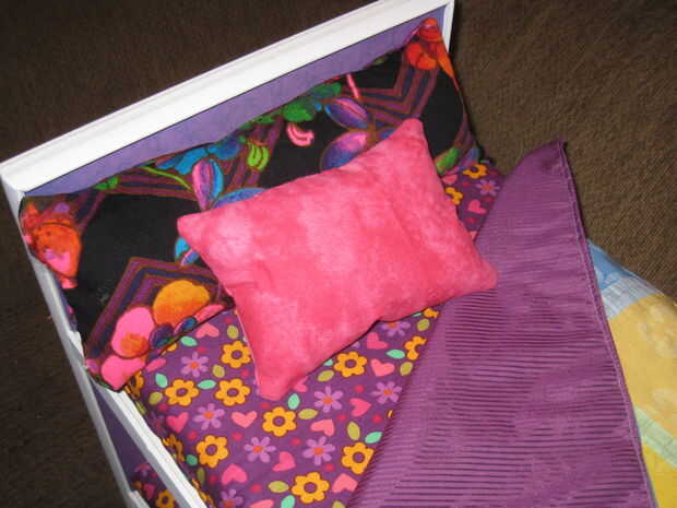 2. encuentra algo de tela en una tienda, asaltar su escondite de tela o Compruebe hacia fuera el estante del despacho en su tienda de artesanía local. Para una cama de la muñeca no hay ninguna razón para tener que pagar el precio completo para la tela. Cortar 4 rectángulos, dos para cada colchón y con revés contra uno frente al otro cosen tres de los cuatro lados juntos.