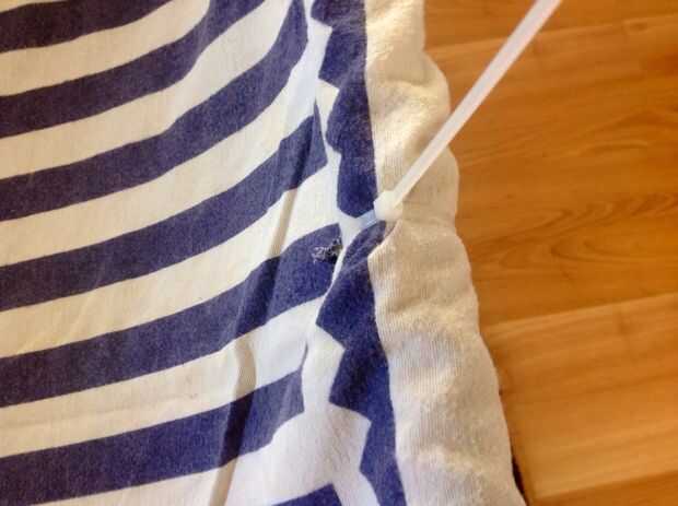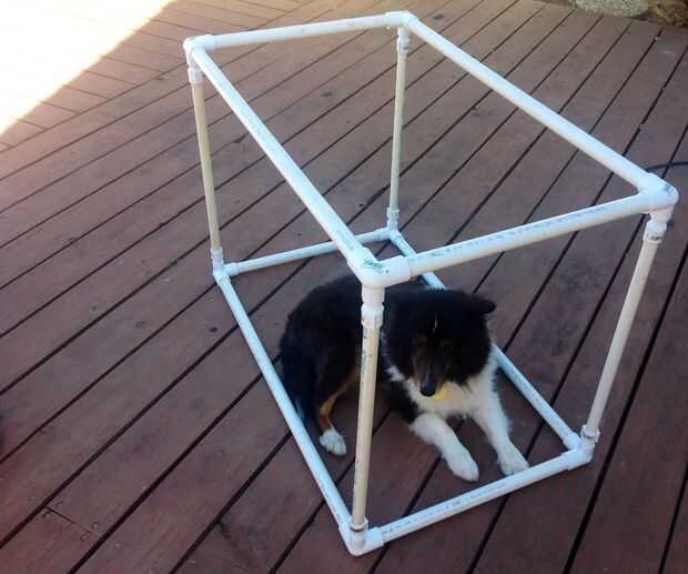Asegúrese de que el marco es lo suficientemente grande para los perros Coloque la tela solamente en el 2do nivel Empujar los agujeros en la ropa y zip tie la tela y la tubería junto