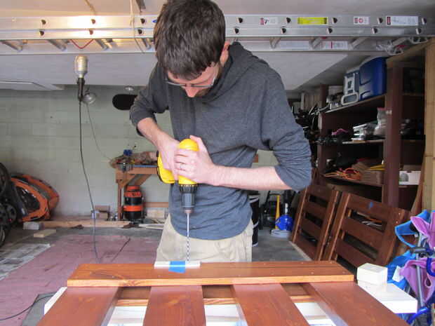 - Separación del agujero: Hay un error en la guía de la valiente que es bastante obvio: él perfora los agujeros para los tirafondos 4,5cm de separación, no pulgadas. Con los tornillos más grandes estaba usando, coloqué mina 6,5 cm aparte en lugar de otro... de lo contrario se sentían demasiados
