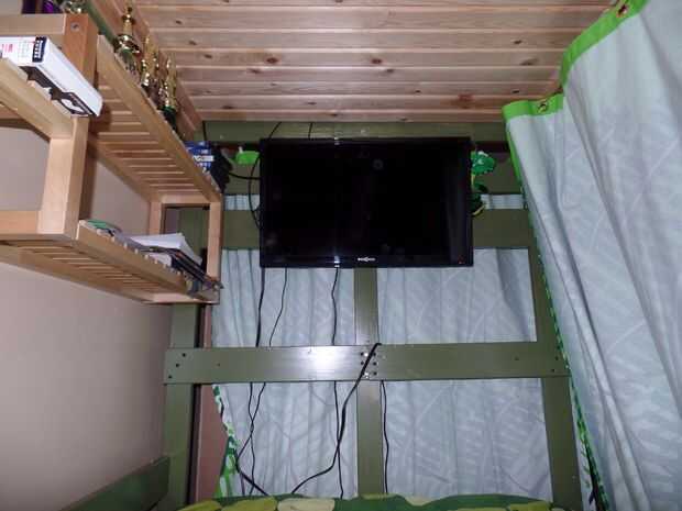 Hemos añadido más cruzadas bases para soportar al monitor. Nos encolar las piezas superior excepto los tres últimos. Nos permite acceder a la parte superior de los cables y esas cosas.