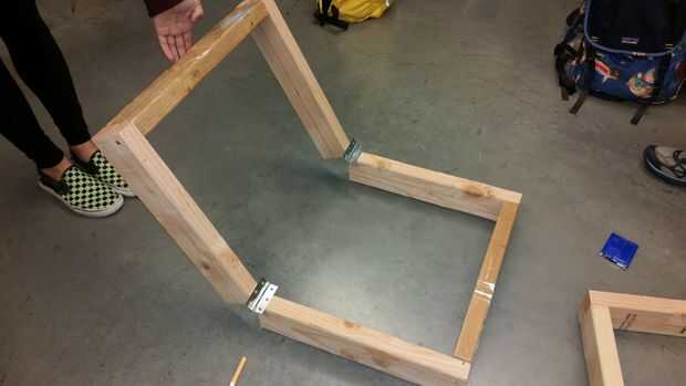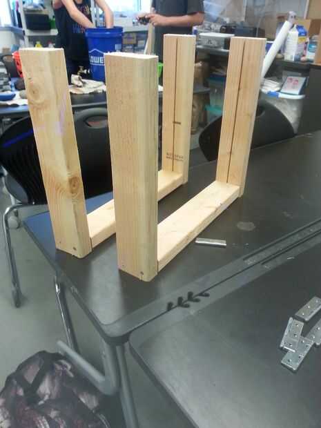 En primer lugar, tomar las piezas de madera de 1.5' (o3') y agruparlos en grupos de tres. Utilizando los 4" tornillos más largos (o 2") el lugar dos de las tres piezas y ponerlas en forma de 'L'. Utilice dos tornillos para conectar los pedazos juntos al final. Luego tomar la otra pieza y adjuntarlo a otro final del interior pieza con dos tornillos a una forma de 'U'. Repita este proceso hasta tiene cuatro formas de 'U'.