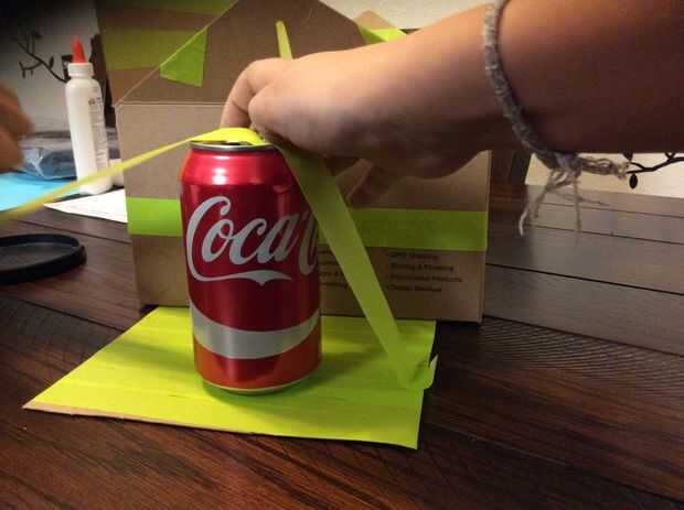 Mis gustos de gato esta Coca Cola puede hacer decidió utilizar en este proyecto. Os adjunto la lata a mi plataforma de usar más de mi cinta verde. Tengo tanta cinta extra verde, ¿por qué no?