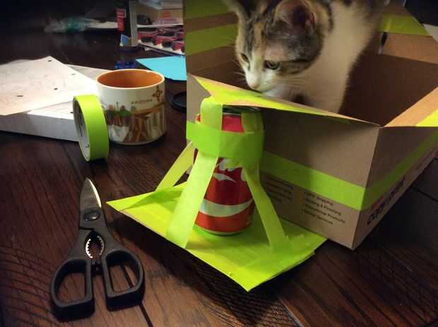 Ahora, para asegurar las tiras de cinta con más cinta cinta verde alrededor de la lata y las tiras de cinta de embalaje.