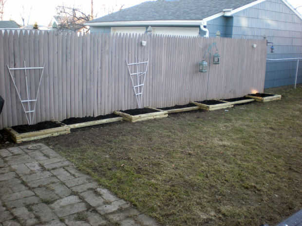 El lo único que queda ahora es llenar los niveles de suciedad. Si usted necesita comprar tierra, arrancó bolsas en Lowes son 50% off. Tuvo 20 + bolsas de 40 libras para llenar todo un marco de referencia. Aún es un poco pronto para plantar aquí en Buffalo, pero esperemos que debo obtener cosas dentro de un par de semanas.