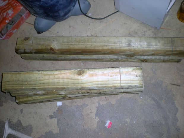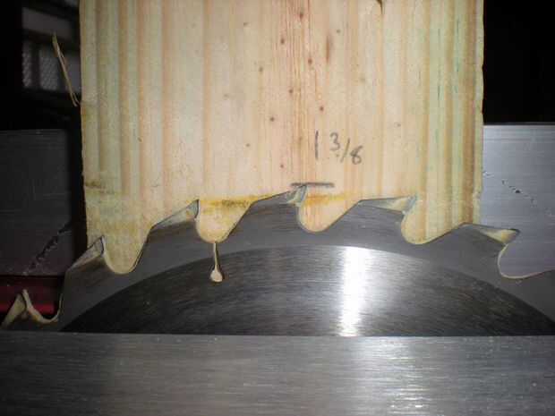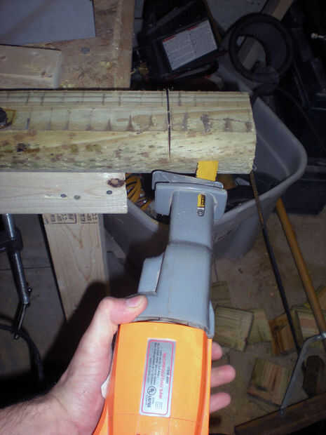 Necesita cortar cada cada 40" pieza en ambos extremos y cada 28" pedazo sólo un extremo. Para establecer la profundidad de la cuchilla de la sierra, tome un trozo de madera y marca en 13/8. Recorren cada registro 4" del extremo. Luego ajuste la sierra a la altura máxima y 1 3/8" de la cerca. Recorren cada registro verticalmente. Debe tener aproximadamente 1" izquierda que usted necesita para terminar con un alternativo vio.