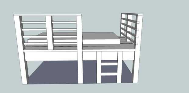 1) decidió en las dimensiones básicas que desee para su cama. "Este es 86" x 56 x 51 alto"tener cosas como ventiladores de techo en cuenta como vas subiendo.