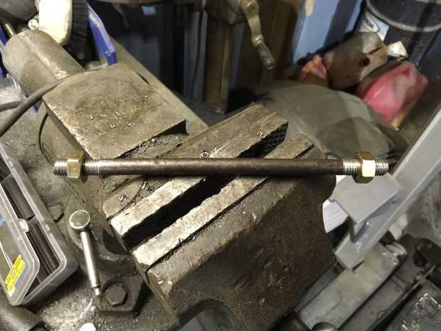 Fui a una ferretería local para obtener todos los tornillos de mi. Sin embargo no llevaron un tornillo lo suficiente para unir las crucetas en el centro (deben ser 6"+) así que hice mi propio fuera de algunos alrededor de acción de la barra encontré tendido alrededor de corta longitud y rosca ambos extremos con un troquel.