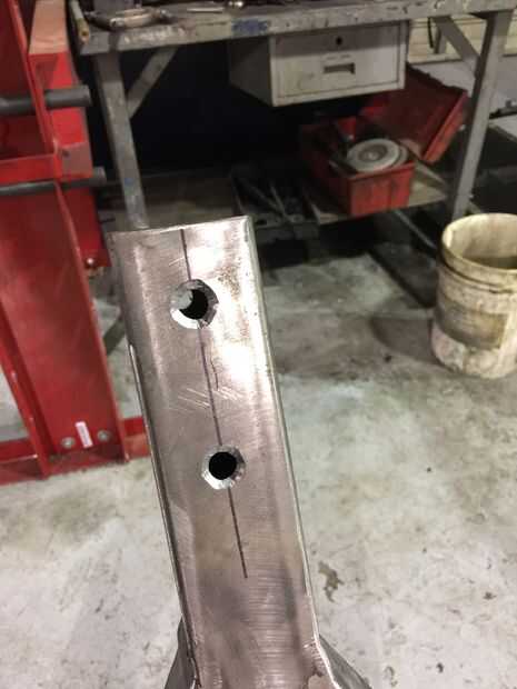Marcado, perforado y los orificios perforados para mis puntos de anclaje y los tres agujeros en cada una de las crucetas en este punto.