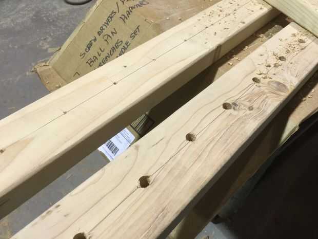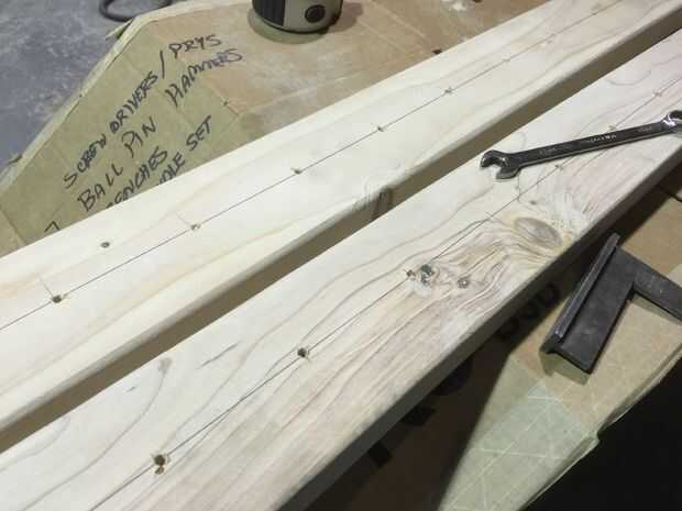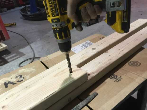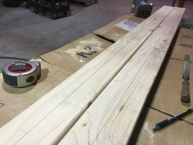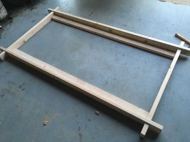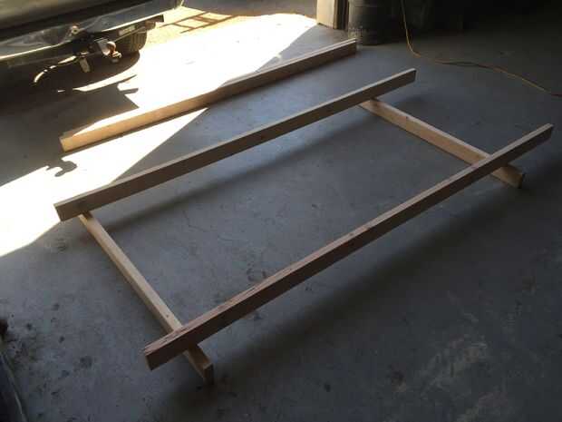 Una vez que tenga el perímetro encajado entre sí usar sus dos últimos 2x4s y cortar para caber dentro de la estructura. Estos serán los largueros de su cuerda.