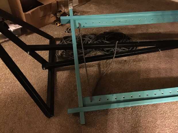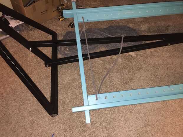 Una vez que el último orificio, vuelva al principio y tirar el juego de la cuerda, trabajando hasta el final. Entonces regrese y hágalo otra vez (te sorprenderá cuánto sacar en cada paso). Este es su propio entrenamiento y requiere de mucha fuerza de prensión y resistencia, especialmente si lo haces inmediatamente después de la cuerda del cordón como lo hice. Encontré hacia fuera en este momento todo lo que la tensión subraya el marco significativamente y hace que gire y deformación para tensar cualquier que puede haber estado presente en los filo de la navaja media vuelta juntas (una razón clave para asegurarse de que encajan perfectamente que no hice.) Afortunadamente, cuando usted pone en él todo parece resolver por sí mismo.
