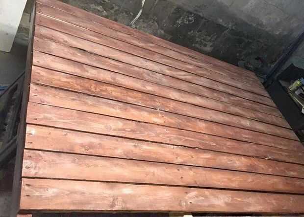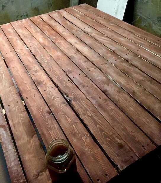 Estas partes blancas son lo que van a absorber parte de la mancha de café y vinagre que se puede aplicar ahora. La segunda imagen que os adjunto es inmediatamente después de aplicar la mezcla de café y vinagre. Como se puede ver, el blanco va a desaparecer después de mojarla con la mancha de café. No te asustes, se seque y volver con un agradable color rústico.