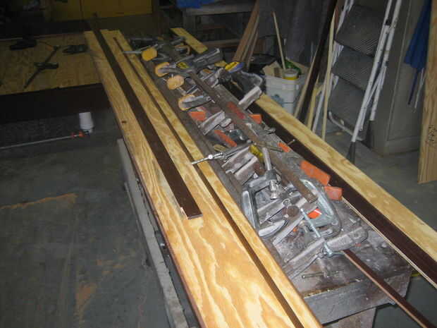 Para fijar los rieles a la plataforma y proporcionar estabilidad a la plataforma - un 2 X 1 "soporte" de las clases fue pegado en y atornillado. Véase el cuadro 4 con el soporte instalado.