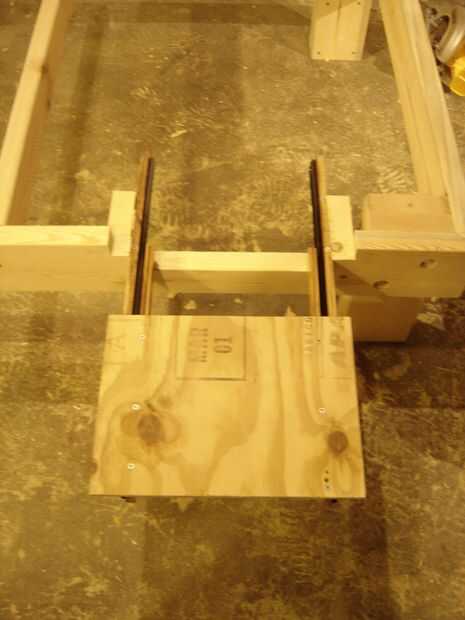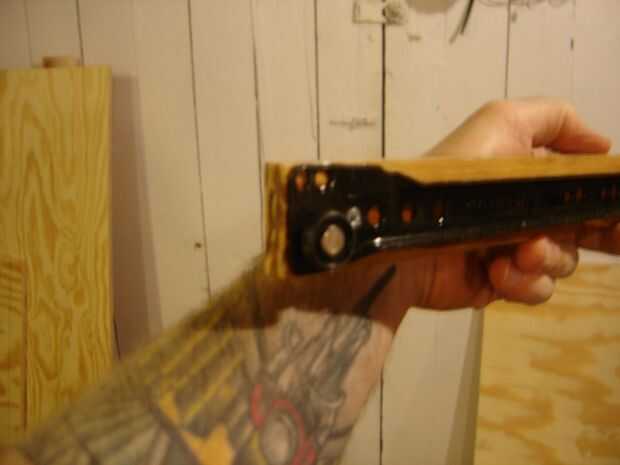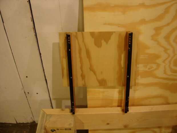 Montara el par interno de diapositivas (las que se unirá a la mesa) para chatarra de piezas de bambú cortado para caber. Estos particulares son 1-3/8" alto, por lo es la altura del bambú. Están montados en la parte inferior de la tabla con tornillos y establecidos tan amplia como sea posible para la ayuda, pero todavía permitiendo el tobogán externo que está escondido debajo de la mesa.