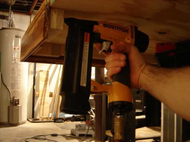 Para conectarlo el bambú, usé pegamento del gorila y clavitos de la pistola de clavos. Usé el pegamento gorila porque pensé que la gente realmente puede sostener por el bambú cuando está moviendo la cama, y necesitará muy fuerte. Para el resto del bambú en este proyecto, he utilizado pegamento de pisos de madera que es muy flexible para permitir a la madera para ampliar. Los clavitos tenían un tiempo duro, penetrando en el bambú algunas veces, incluso a 125 psi, pero otra vez el bambú es muy duro. Generalmente usé pinzas para mantener el bambú pegado en lugar mientras que acertó. Acabó bastante recto y muy fuerte.