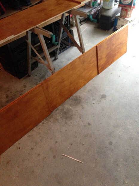 Pieza de pegamento y luego la abrazadera un 15 x 20" pieza en cualquiera de los extremos de cada 15 x 61"; pieza de pegamento y la abrazadera un 15 x 25" pieza en cualquiera de los extremos de cada 15 x 81". Asegúrese de que los bordes estén tan al ras como sea posible, especialmente en la parte inferior. Deje que estas seco por lo menos un par de horas.