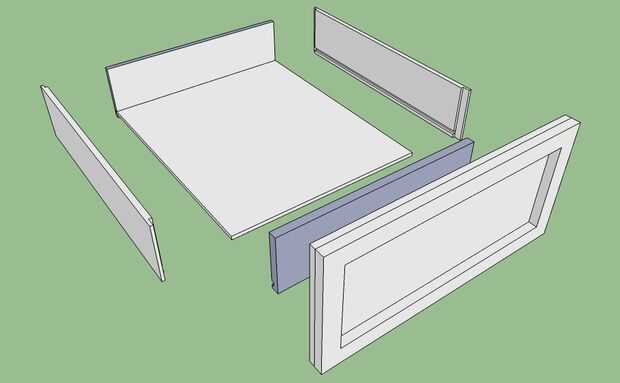 se trata de una cama que hice recientemente para tratar de maximizar el espacio en el dormitorio de mi pequeño apartamento. En lugar de hacer un armario o la compra de una cama de almacenamiento similares en Ikea (que conozco la voluntad desintegrars