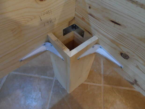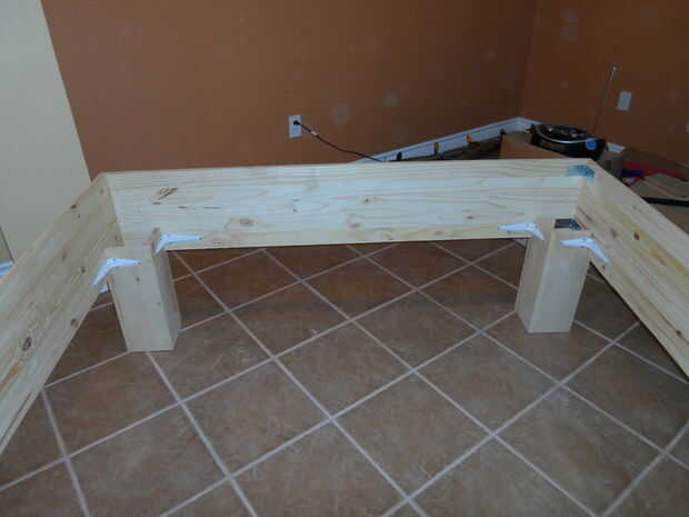 Para fijar las patas a los rieles colocó en los rieles como si la cama estuviera boca abajo. Usé soportes normales para estas juntas porque son fuerte y barato. Coloque las piezas más cortas de la pierna en los rieles y las piezas más largas dentro del marco. PEGAMENTO NI CLAVOS PARA ESTE PASO!