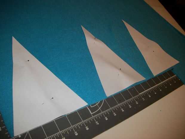 Los triángulos eran un poco difíciles pero era lo único que podría conseguir la forma de 'cúpula'. Los triángulos fueron 6 pulgadas de ancho por 10 pulgadas de alto. Para hacer esta marca 3 pulgadas marca en su base y subir de 10 pulgadas y haga una marca. Entonces usted tendrá que conectar los puntos de allí. Alinee la marca de 6 pulgadas con 10 pulgadas y la marca de 0 pulgadas con la marca de 10 pulgadas y debe asemejarse a los triángulos en la imagen. Lo siento no sé cómo explicarlo mejor.