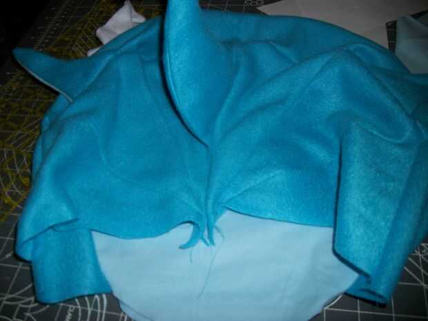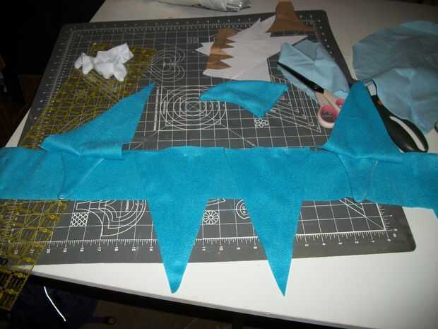 Ahora aquí viene la parte difícil. Tomar 2 triángulos que están al lado del otro y pellizcar los bordes juntos para que los lados derecha se tocan y los pines juntos en la parte superior e inferior de los bordes. Seguir haciendo esto con cada triángulo hasta que todos estén conectados y debe ver algo como en la foto 7. Entonces añada su aleta dorsal. Perno entre el triángulo de 3 º y 4 º entre el pasador superior e inferior. La aleta dorsal debe estar en el interior de la cúpula y la parte curvada / frente de la aleta debe hacer frente a la apertura de la cama.