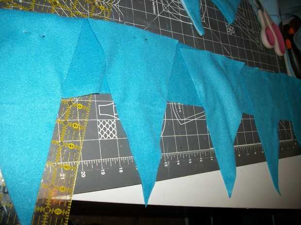 Pongo mis aletas debajo de cada uno del segundo de los triángulos de la final. Si queremos más cerca puede prender bajo los triángulos primero/último o a donde quiere. Cosa alrededor de un cuarto de pulgada de la costura para coser a través de los triángulos, tira y las aletas.