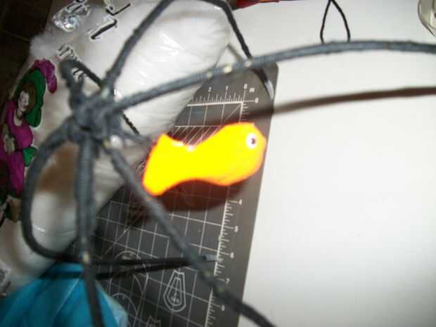 Todos ellos había doblado en una curva y me les atados juntos en el centro con hilo de atarlos todos juntos. Envuelve el hilo alrededor de cada uno de los cables y me graba los extremos por lo que sería menos puntiagudos.