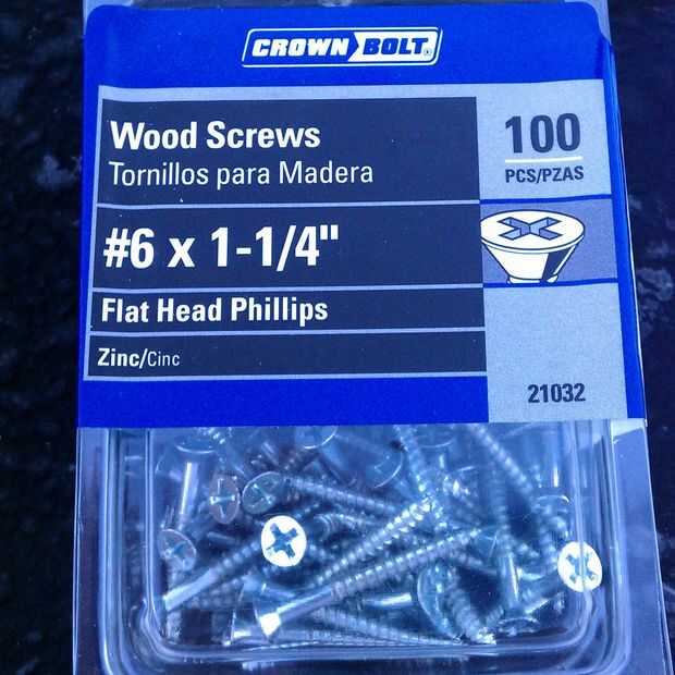 4. tornillos de madera #6 x 1¼" 100 ~$5.00 cuenta