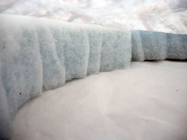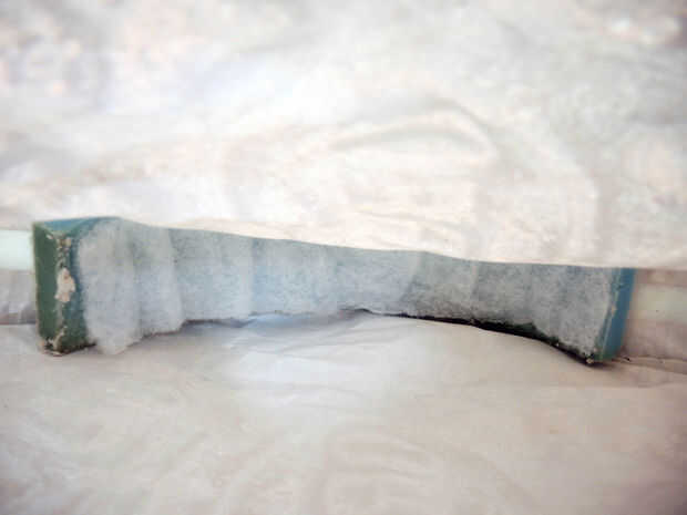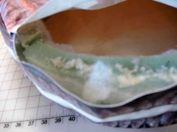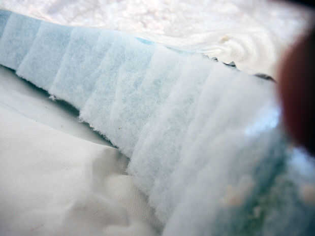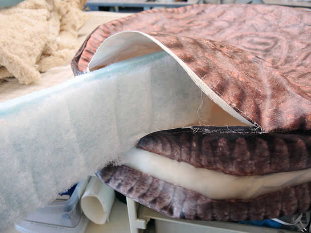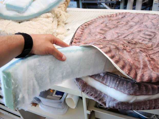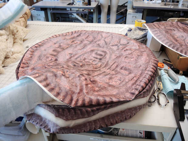 Después de cortar la espuma en anchos de 5.5", he puesto alrededor de los bordes del interior de la cáscara para hacer una pared.