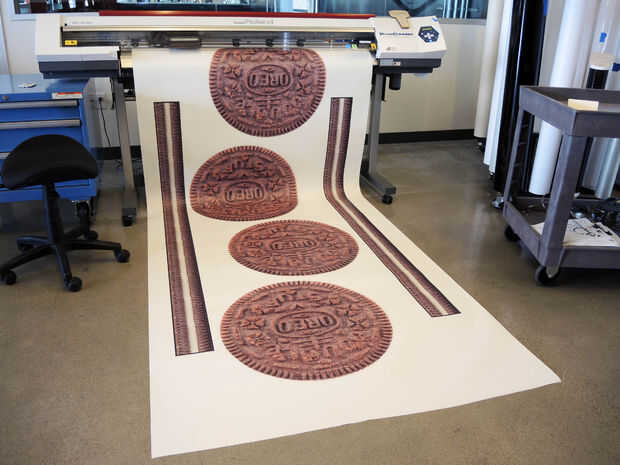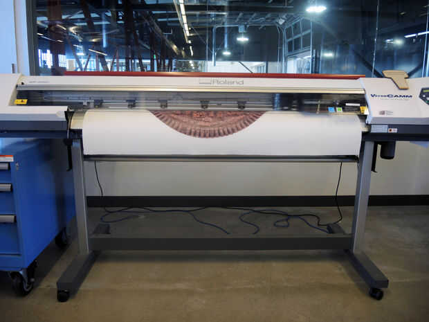 Esta impresa en lonas recubiertas con la Roland Versacamm impresora/vinylcutter que tenemos aquí en la sede, pero sin duda te podría enviar hacia fuera a una oficina de servicios para imprimir si se va a hacer uno usted mismo.
