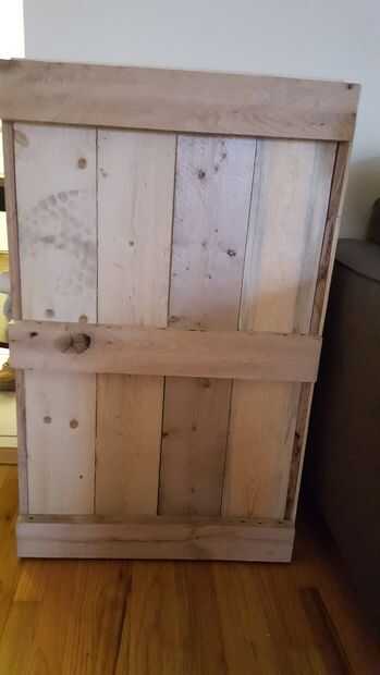 Una vez tenía las placas de capa base preparadas yo cortar algunas tablas de roble del larguero de los palets y había les había utilizado como los pies de la cama del perro. Cortarlas hasta 25,5" es porque necesitaba establecer las paredes encima de lo 3/4" saliente en la parte delantera y trasera. Cuando atornilló las mejores tablas en los largueros compensan los listones de 3/4" a la izquierda y derecha así como para descansar las paredes en. Yo no te molestes en arena o alisar las patas de la cama.