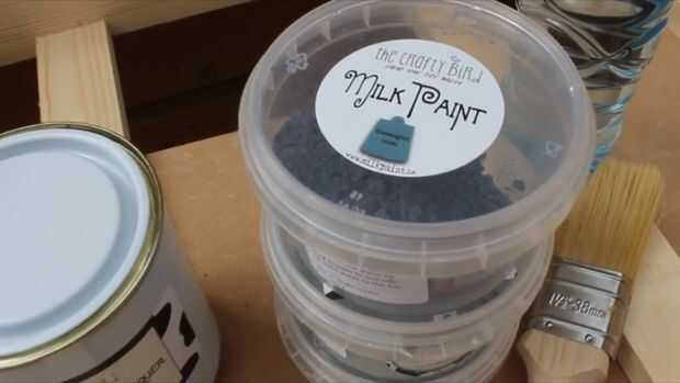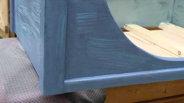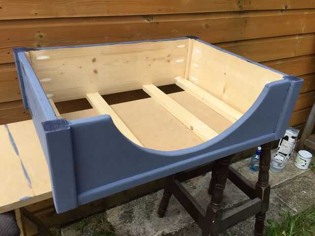 • He utilizado una pintura de leche azul oscuro para la primera capa exterior de pintura en la cama y gris como la capa interna