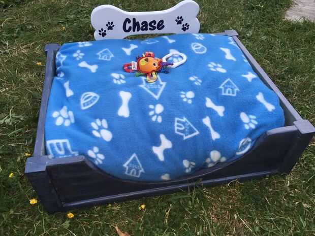 • Use algunos tornillos para unir el hueso con su nombre de perros a la cama y añadir un amortiguador suave agradable
